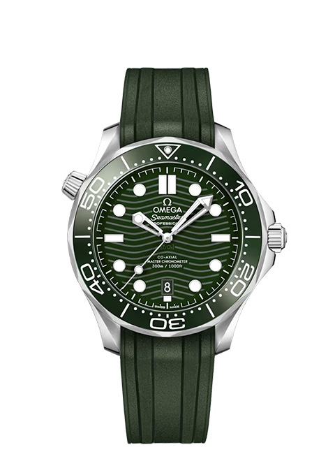Corredato da un cinturino in caucciù verde, l’orologio è animato dal calibro OMEGA Master Chronometer 8800, visibile attraverso il fondello in vetro zaffiro con bordo ondulato.