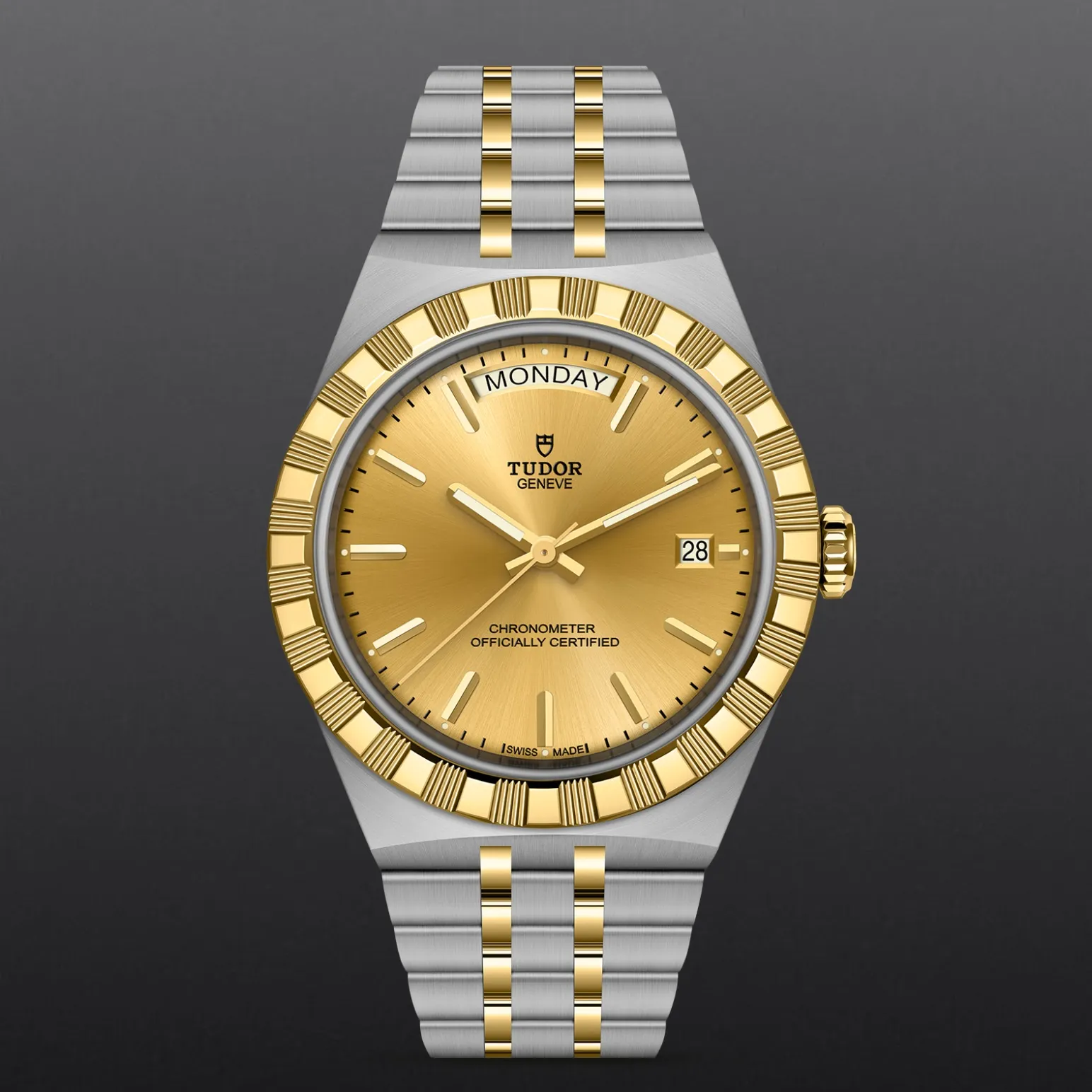 Il nome Royal fu usato per la prima volta da TUDOR negli anni ’50 per sottolineare la qualità superiore dei suoi orologi. La linea TUDOR Royal rientra nella tradizione del Marchio di proporre segnatempo dallo stile sportivo ed elegante, con movimenti automatici e bracciali integrati, ad un prezzo accessibile ma che non scendano a compromessi sulla qualità. Orologi dalle prestazioni tecniche all’avanguardia e l’estetica raffinata, al crocevia tra i modelli classici e quelli sportivi, i segnatempo di questa linea sono disponibili in acciaio o acciaio e oro e proposti in quattro misure con una vasta selezione di quadranti.