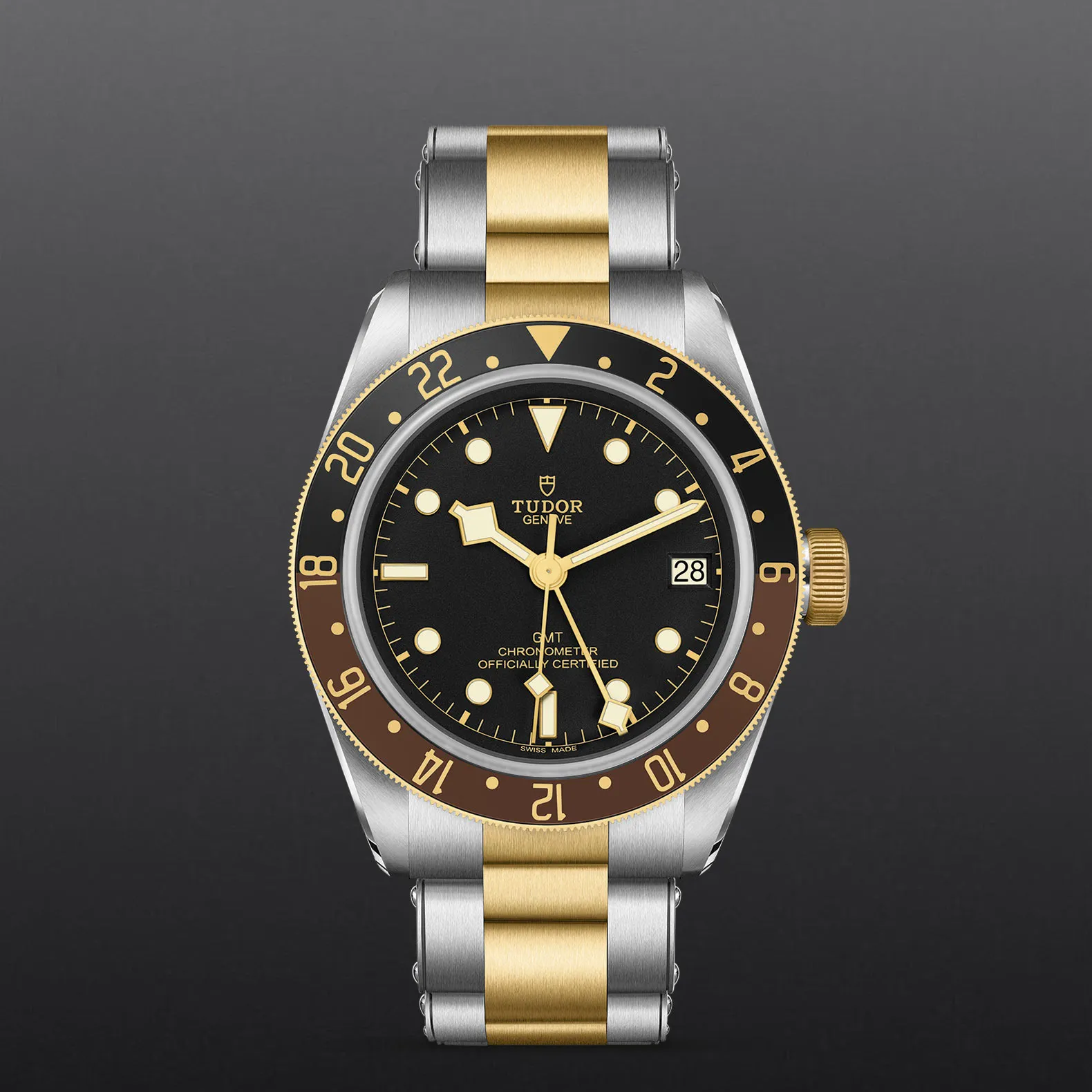 Il Black Bay GMT è un’estensione del Black Bay dotata di una complicazione estremamente funzionale: la funzione GMT, che permette di leggere molteplici fusi orari. Immediatamente riconoscibile grazie alla sua lunetta girevole, declinata in blu profondo e bordeaux come per altri modelli della collezione Black Bay, ma in versione opaca, il Black Bay GMT si ispira anche agli esordi di questa funzione orologiera.